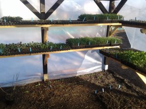 Anfang dieses Jahres begannen wir, einen Gemüsegarten von 500m² anzulegen. Zum Einsatz kamen dabei nur ausgewählte Bio-Komposterde der Fam. Pongratz aus Dobl und Bio-Holzkohle von einer der letzten Köhlereien in Österreich (Fam. Wieser in Rohr im Gebirge, NÖ). Wir betreiben unseren Garten in reiner Handarbeit, von der Aufzucht der Jungpflanzen bis zur Ernte. Dabei legen wir besonderen Wert darauf, den Boden in bestem Zustand zu erhalten und zu verbessern. Dazu verzichten wir auf den Einsatz schwerer Maschinen, synthetischer Pestizide und gentechnisch „optimierter“ Pflanzen.
